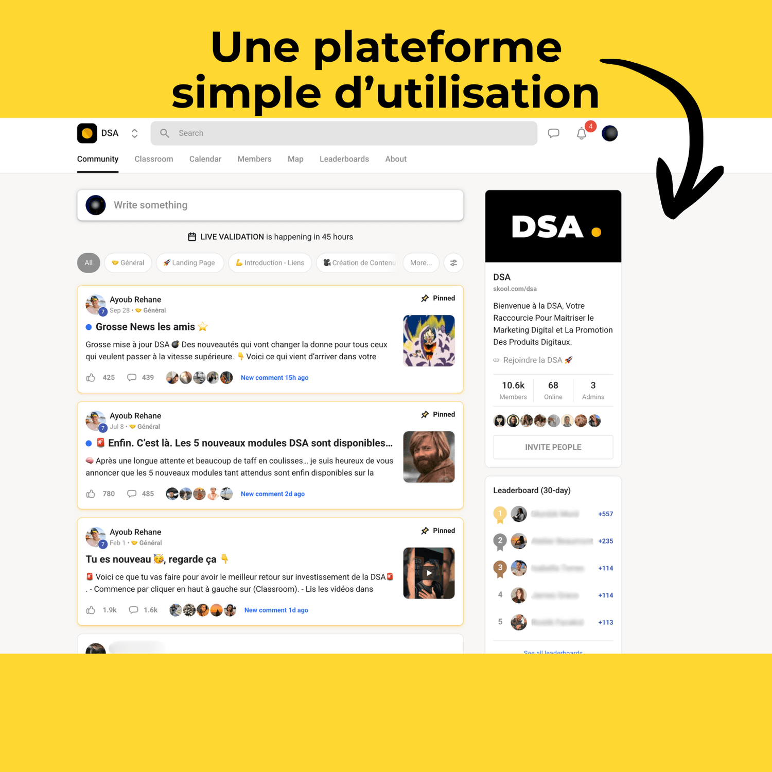 Paiement et inscription rapides sur la plateforme Skool.