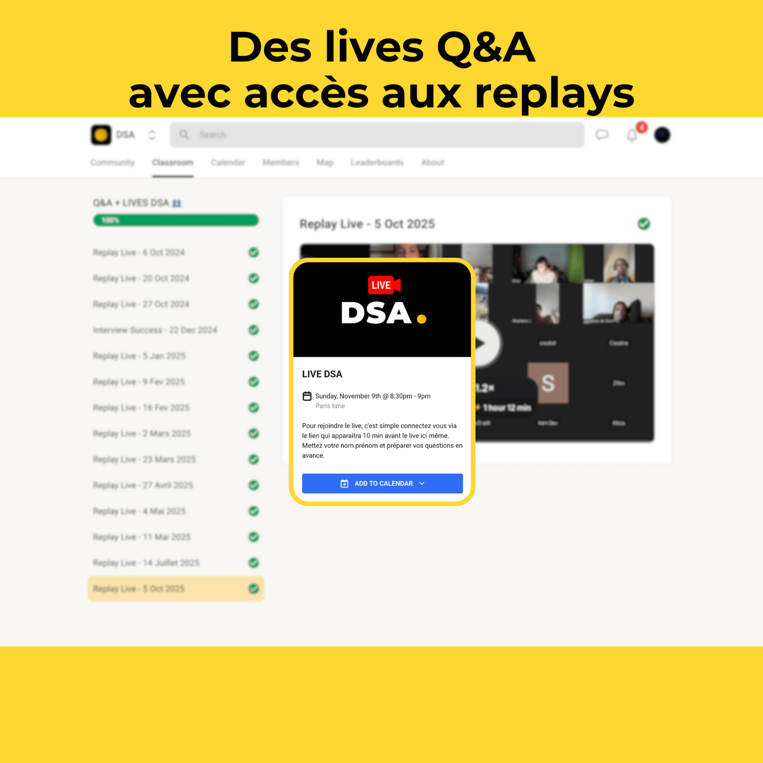 Accès A VIE à la formation pour pouvoir la visionner, prendre des notes et utiliser ses ressources autant de fois que nécessaire.